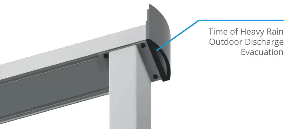 SkyFlow is engineered to deliver both structural strength and seamless integration into any architectural setting. The system is supported by sleek aluminum columns at the front, while the rear is designed for direct connection to existing walls or ceilings using reinforced steel components and precision-engineered mounting plates. This allows for a clean, modern installation without compromising stability. What truly sets SkyFlow apart is its intelligent water management design.